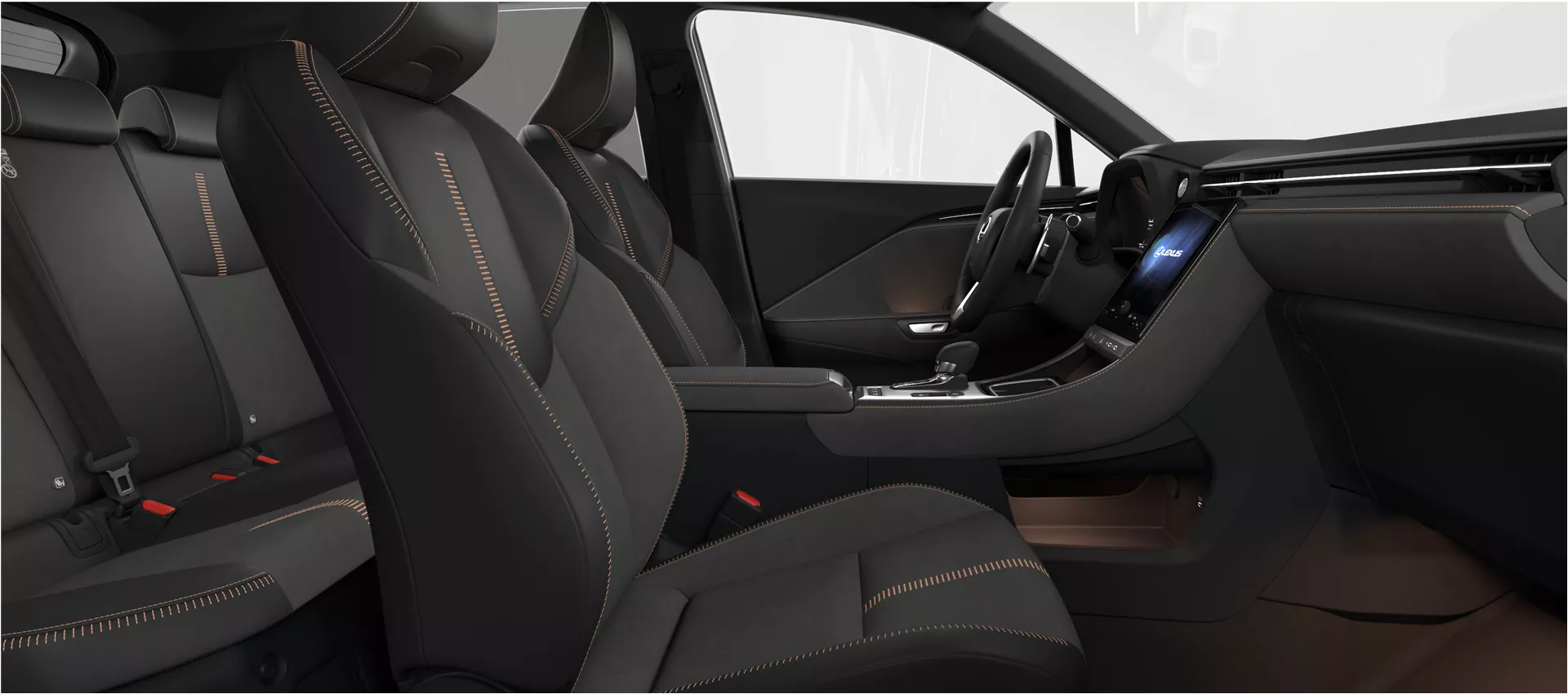 Ultrasuede Samtschwarz/Dunkelgrau mit kupferfarbenen Nähten