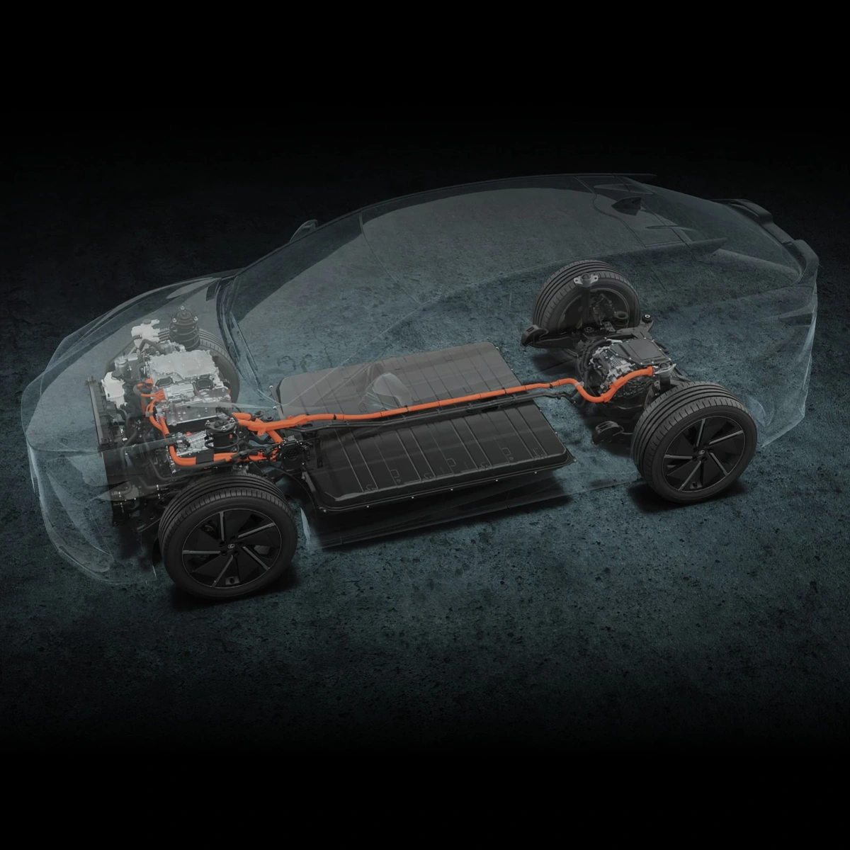 20" Leichtmetallfelgen mit Aerodynamik-Abdeckung und Bereifung 235/50R20 front und 255/55R20 hinten